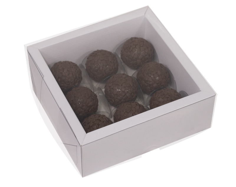 Scatola con spazio per 9 caramelle o cioccolatini.